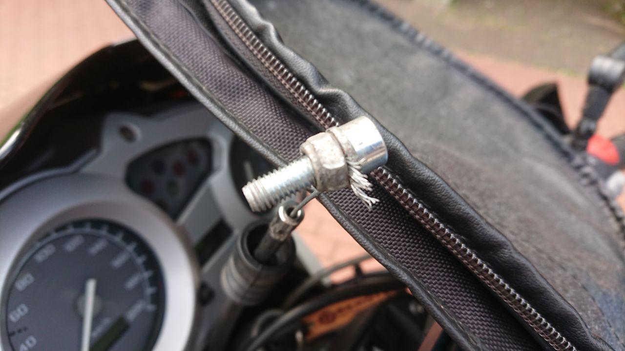 Yesterday I just finished maintenance on my motorcycle, for the whole trip I hoped. A clutch cable needed some replacement as well as some other minor things. For this cable I bought a universal replacement with some screws to fix it to the proper length. This scew turned itself loose during my first 250 km leaving me coasting in neutral gear into a rest bay. I sweared internally for a bit but wasn’t fazed as I packed a second replacment one. Or so I thought. Turns out it was still safe and sound in the garage on the desk. So I improvised with a nut, a washer and a bolt of my luggage rack (no panniers on this journey anyway).