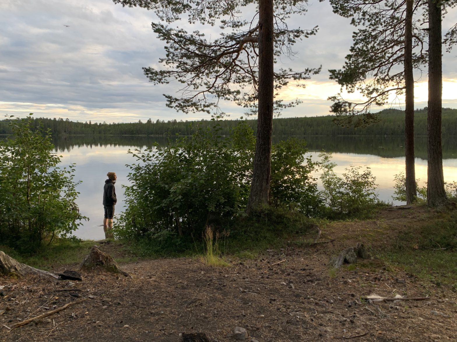 Today was really chill and not extraordinary by any means. We had porridge for breakfast and the mosquitoes were much less of a nuisance than yesterday. During our lunch break we had a nice chat with a couple traveling by motorcycle around Scandinavia as well. At the afternoon break Benni cleaned his chain and chain guard pretty thoroughly. I was pleasantly surprised that I ended with clean hands, as I used our cooking fuel to pre-clean my hands, was able to use the restroom of the gas station and even had lotion afterwards. That turned out better than expected.